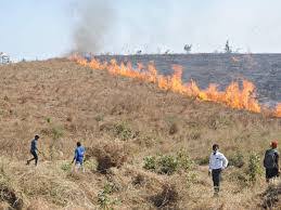 शेंडा पार्क इथल्या मोकळा जागेवरील गवताला आग.
