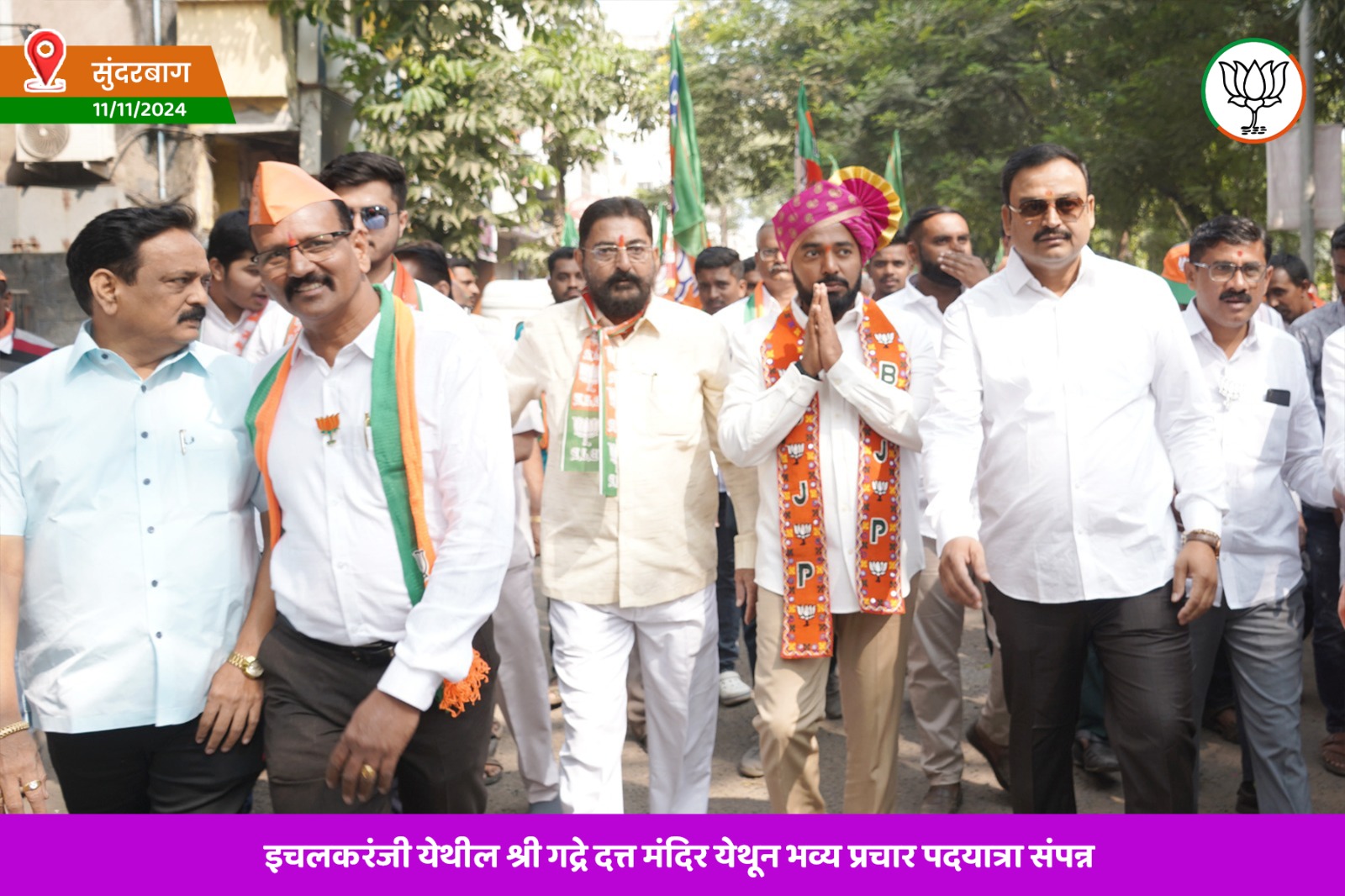 इचलकरंजी येथील श्री गद्रे दत्त मंदिर येथून महायुतीचे अधिकृत उमेदवार मा. श्री. राहुल प्रकाश आवाडे यांच्या नेतृत्वाखाली एक भव्य प्रचार पदयात्रा पार पडली. या प्रचार पदयात्रेने इचलकरंजी विधानसभा मतदारसंघात एक नवा उत्साह आणि जागरूकता निर्माण केली.