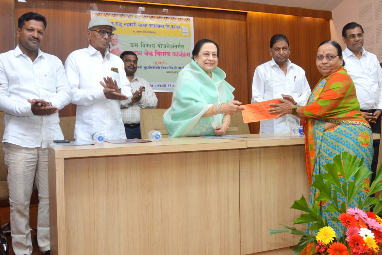 शाहू साखर कारखान्याच्या ऊस विकास योजनेंतर्गत सभासद शेतकऱ्यांना अनुदान चेकचे वाटप करण्यात आले. यावेळी सुरुवातीला राजर्षी शाहू महाराज व दिवंगत संस्थापक विक्रमसिंहराजे घाटगे यांच्या प्रतिमेस अभिवादन करण्यात आले. कार्यक्रमाला व्हाईस चेअरमन अमरसिंह घोरपडे, संचालक सचिन मगदूम व शिवाजीराव पाटील उपस्थित होते. शेती अधिकारी दिलीप जाधव यांनी स्वागत केले, तर कार्यकारी संचालक जितेंद्र चव्हाण यांनी प्रास्ताविक केले.