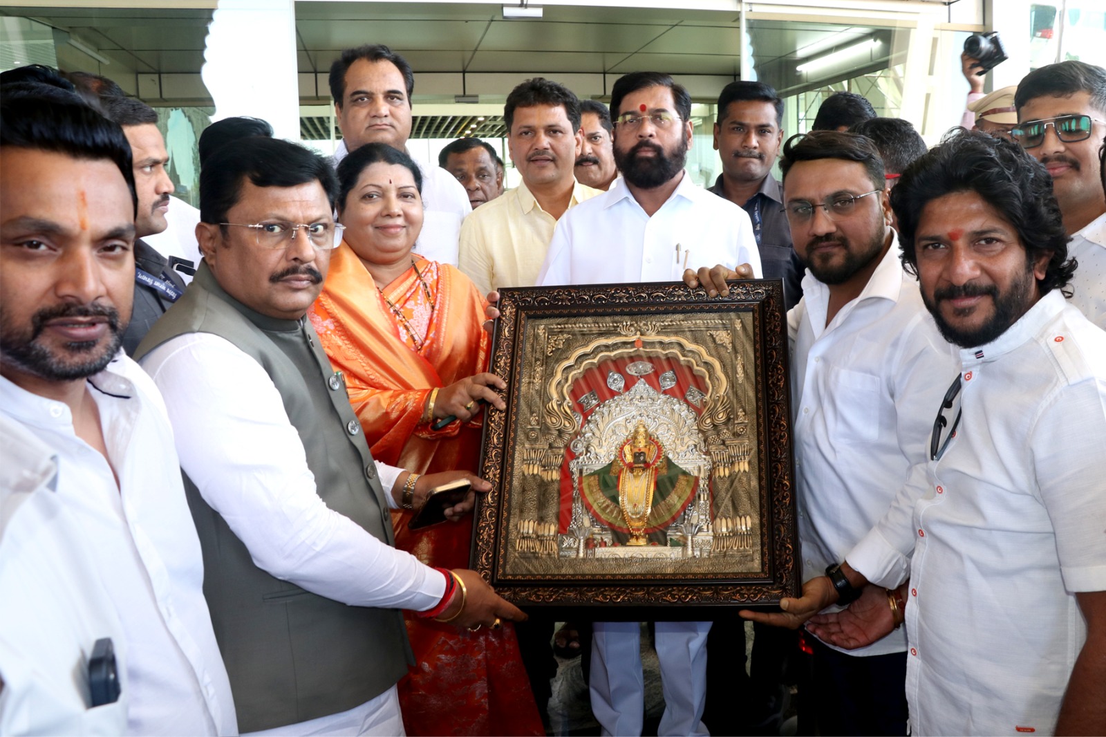 राज्याचे उपमुख्यमंत्री एकनाथजी शिंदे साहेब यांनी विधानसभा निवडणुकीतील यशानंतर प्रथमच कोल्हापुर दौऱ्यावर येऊन आई अंबाबाईचे दर्शन घेतले. कोल्हापूर विमानतळावर युवा उद्योजक सत्यजित चंद्रकांत जाधव व जयश्री चंद्रकांत जाधव (शिवसेना उपनेत्या) यांनी महालक्ष्मीची मूर्ती व पुष्पगुच्छ देऊन त्यांचे स्वागत केले.