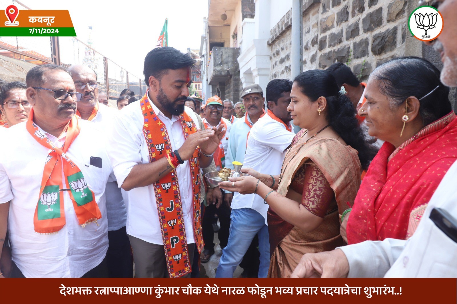 महायुतीचे अधिकृत उमेदवार राहुल प्रकाश आवाडे यांच्या प्रचारार्थ प्रमुख पदाधिकारांच्या उपस्थितीत कबनूर येथे देशभक्त रत्नाप्पाआण्णा कुंभार चौक येथे नारळ फोडून भव्य प्रचार पदयात्रेचा शुभारंभ करण्यात आला. या पदयात्रेने इचलकरंजी विधानसभा मतदारसंघात एक उत्साहवर्धक वातावरण निर्माण केले.