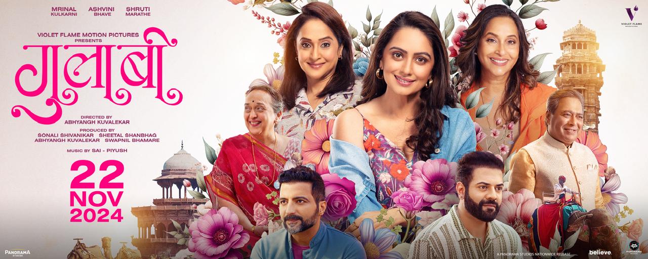 प्रेक्षकांच्या उत्सुकतेचं कारण बनलेला मराठी चित्रपट 'गुलाबी' २२ नोव्हेंबर २०२४ रोजी चित्रपटगृहांत प्रदर्शित होणार आहे. अभ्यंग कुवळेकर यांच्या दिग्दर्शनाखाली साकारलेला आणि व्हायोलेट फ्लेम मोशन पिक्चर्स प्रस्तुत हा चित्रपट मैत्री, स्वप्नं, आणि स्वतःचा शोध घेण्याचा प्रवास रंगवतो. यात प्रमुख भूमिकांमध्ये अश्विनी भावे, मृणाल कुलकर्णी आणि श्रुती मराठे या तीन अभिनेत्रींच्या अभिनयाचा खास नजराणा प्रेक्षकांना पाहायला मिळेल.