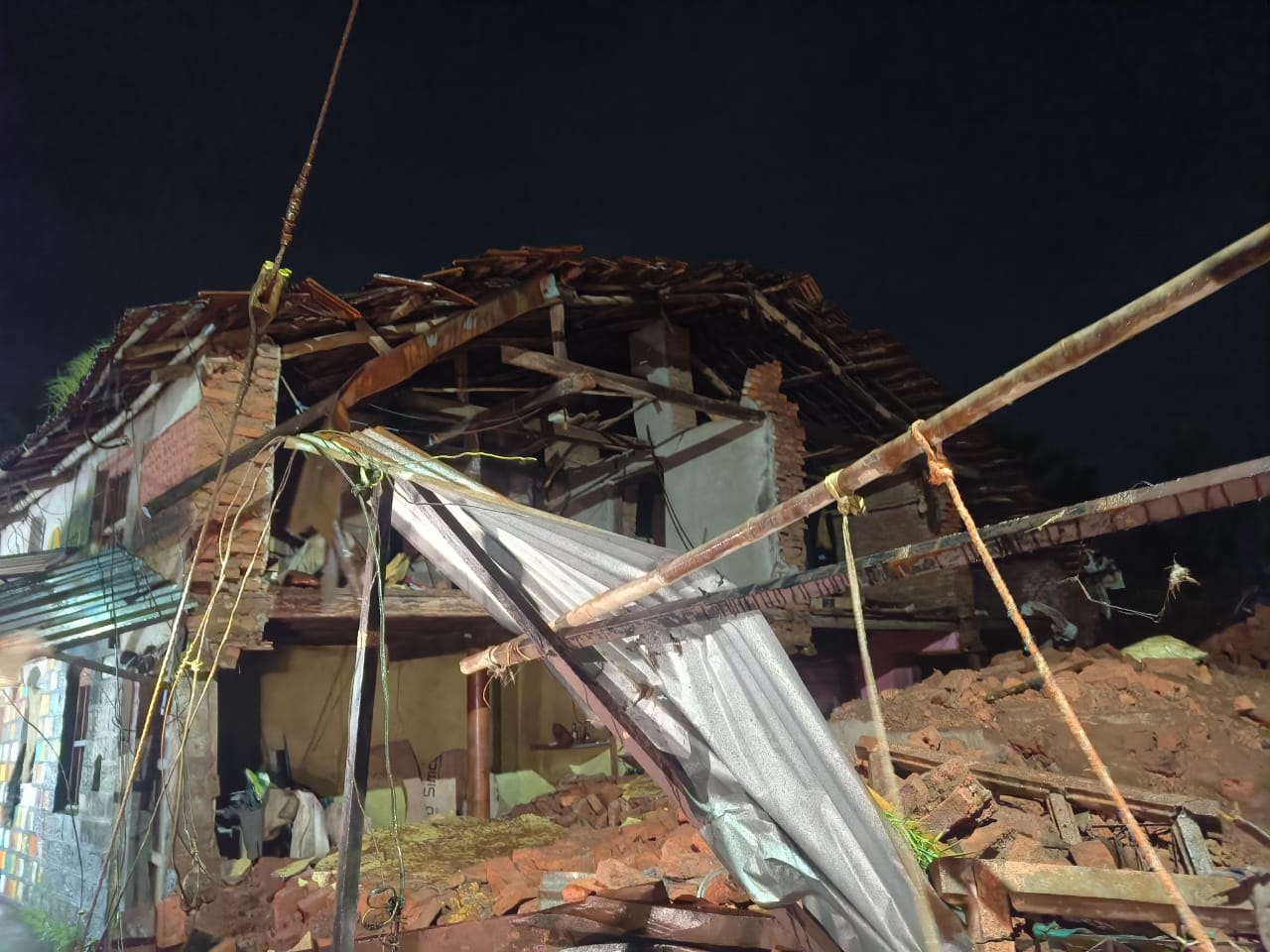 दरम्यान, शेजारील घर राहण्यायोग्य अवस्थेत नसल्याने घरच्यांनी पर्यायी ठिकाणी वास्तव्य केले आहे. परिस्थिती सध्या नियंत्रणात असून गावामध्ये शांतता आहे.