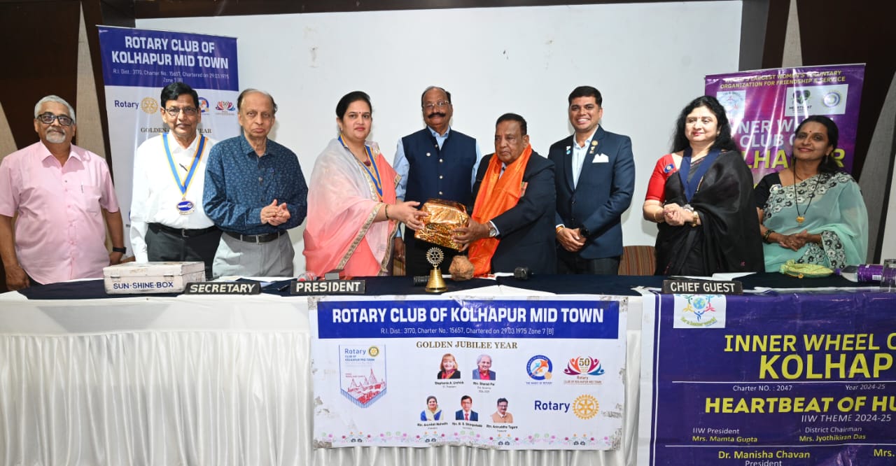अशक्य गोष्टीही त्यांनी शक्य करून दाखवल्या. त्यामुळेच राज्य आणि केंद्र शासनाने त्यांच्या कार्याची दाखल घेतल्याचेही अर्जुन पेटकर यांनी सांगितले. दरम्यान चंदू चॅम्पियन या चित्रपटातील काही भाग या उपक्रमादरम्यान स्क्रीनद्वारे दाखवण्यात आला. युद्धात अपंगत्व येऊन देखील या करारी व्यक्तिमत्वान हार मानली नाही. दिव्यांगत्व प्राप्त झाले असताना देखील त्यांनी विविध स्पर्धात देशासाठी ४७६ मेडल्स खेचून आणली. इतकेच काय तर शिवछत्रपती पुरस्कार प्राप्त या महनिय, पदमश्री पुरस्कार प्राप्त व्यक्तिमत्वाचा आता अर्जुन ऍवॉर्डने राष्ट्रपती दौपदी मुर्मू यांच्या हस्ते सन्मान होणार आहे. हे व्यक्तिमत्व निश्चितच सर्वांसाठी प्रेरणास्थान आहे. देश सेवा करताना प्राण पणान लढणार्या या व्यक्तिमत्त्वाचा रोटरीच्या वतीन सन्मान करण्याचे भाग्य प्राप्त झाल्याचेही रोटरी क्लब कोल्हापूर मिडटाऊनच्या अध्यक्षा सौ. अरुंधती महाडिक यांनी सांगितले. देशातील सर्वांसाठी अखंड ऊर्जेचा स्त्रोत असलेल्या सेवानिवृत्त सुभेदार मुरलीकांत पेटकर या व्यक्तिमत्वामुळे कोल्हापुरातील विविध क्षेत्रातील खेळाडूंना ऊर्जा प्राप्त होणार असल्याचे देखील त्यांनी स्पष्ट केले. जीवनातील प्रत्येक प्रसंगाचा निकराने सामना करा. वाट्याला आलेले प्रत्येक काम हिमतीने करा, शारीरिक व्यंग प्राप्त झाले तरी, बौद्धिक व्यंग स्वीकारू नका. बुद्धी चातुर्यान सर्वांवर मात करा, यश तुमचेचं असेल असा विश्वास देखील मुरलीकांत पेटकर उर्फ चंदू चॅम्पियन यांनी उपस्थितांना दिला.