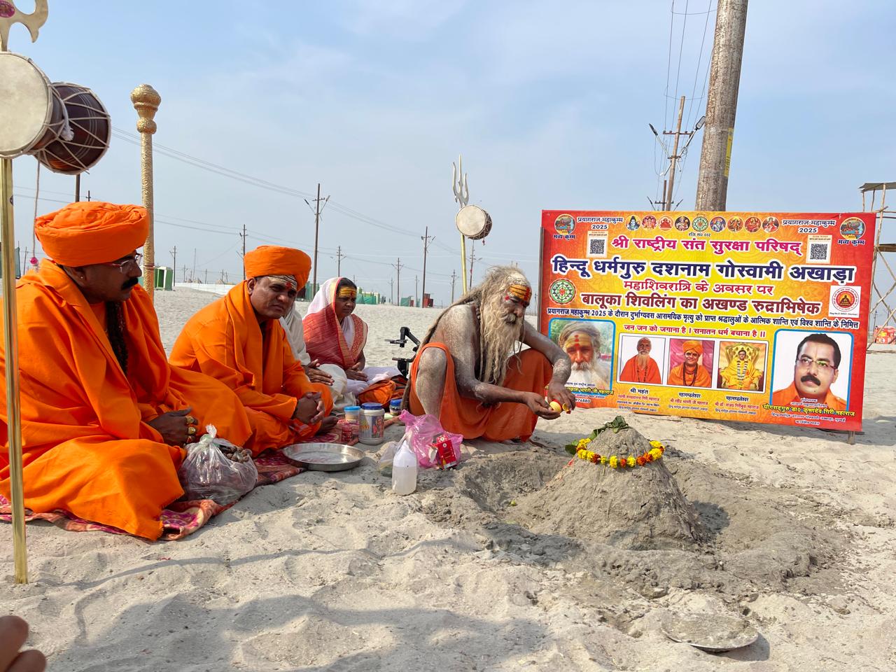 कोल्हापूर / प्रतिनिधी कुंभमेळा अधिकारी, कुंभमेळा प्राधिकरण, प्रयागराज महाकुंभ २०२५ यांच्या मान्यतेने महाशिवरात्री २६ फेब्रुवारी २०२५ रोजी सेक्टर ८ मधील गंगा घाटावर पवित्र यज्ञ करण्यासाठी हिंदू धर्मगुरू दशनाम गोस्वामी आखाडा, मुंबई कार्यक्षेत्र भारत. संस्थापक, आचार्य महामंडलेश्वर, योगसद्गुरु डॉ. कृष्णदेव गिरीजी महाराज आणि महामंडलेश्वर .रवींद्र भारतीजी, डॉ.संजय गिरीजी आणि संतांनी आपल्या भक्तांसमवेत भक्तांच्या आत्मिक शांतीसाठी, दु:खद काळातील दु:खद निधनासाठी रथातून जाऊन स्नान केले आणि हिंदू धर्मगुरू दशनाम गोस्वामी आखाड्याचे वतीने महाकुंभात अकाली मरण पावलेल्या भाविकांच्या विश्वशांती व आत्मिक शांतीसाठी महाशिवरात्री या पवित्र सणानिमित्त वाळूच्या शिवलिंगाची वैदिक पूजा करून श्रद्धांजली वाहिली.