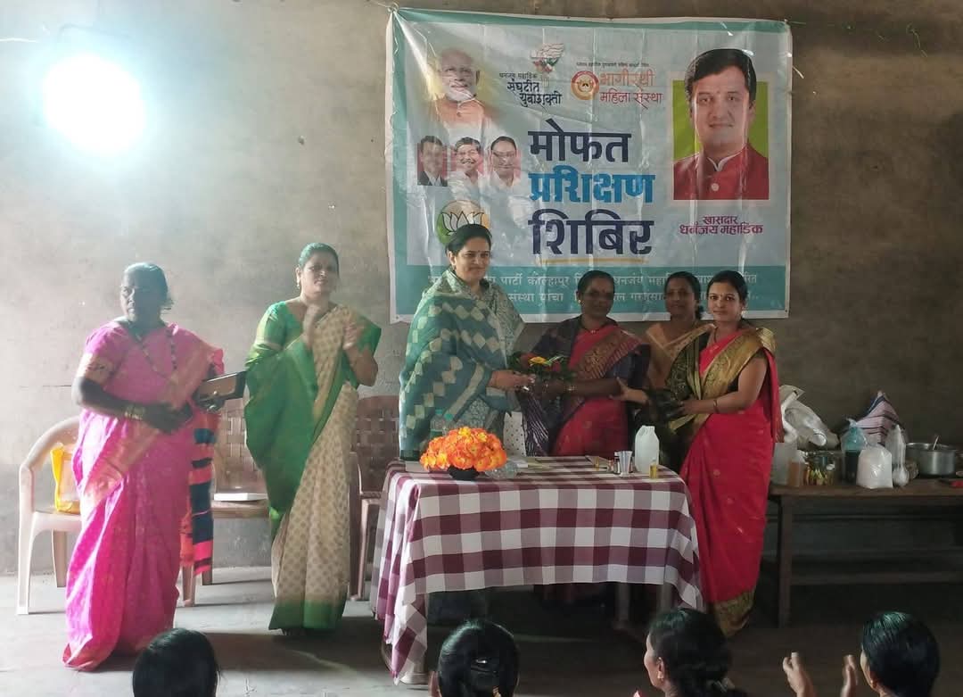 प्रभाग क्रमांक 61 सुभाष नगर येथे भाजपा कोल्हापूर व भागीरथी महिला संस्था यांच्या वतीने मोफत प्रशिक्षण शिबिराचे आयोजन करण्यात आले होते. यावेळी बोलताना अरुंधती महाडिक म्हणाल्या की .आज महिला भारतीय अर्थव्यवस्थेत महत्वाचे योगदान देत आहेत. एक महिला सशक्त झाली तर संपूर्ण परिवार सशक्त होतो. महिलांच्या हाती पैसे आले तर त्याचे सुनियोजन होते, ते वाया जात नाहीत. म्हणून विकसित भारताच्या अर्थव्यवस्थेला गती देण्यासाठी महिलांनी छोटे छोटे व्यवसाय सुरू करावेत. यासाठी भागीरथी महिला संस्था सदैव आपल्याला पाठबळ देईल असे मत अरुंधती महाडिक यांनी व्यक्त केले.