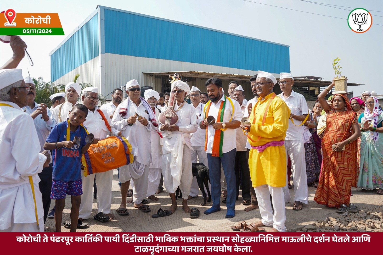 कोरोची येथील विठोबांच्या मंदिरातून कार्तिकी दिंडी साठी भाविक भक्तांचे प्रस्थान सोहळा पार पडला. यावेळी महायुतीचे अधिकृत उमेदवार राहुल प्रकाश आवाडे यांनी दिंडीस भेट देवून माऊलींचे दर्शन घेतले. अभंग आणि टाळमृदंगाच्या गजरात माऊलींचा जयघोष केला.