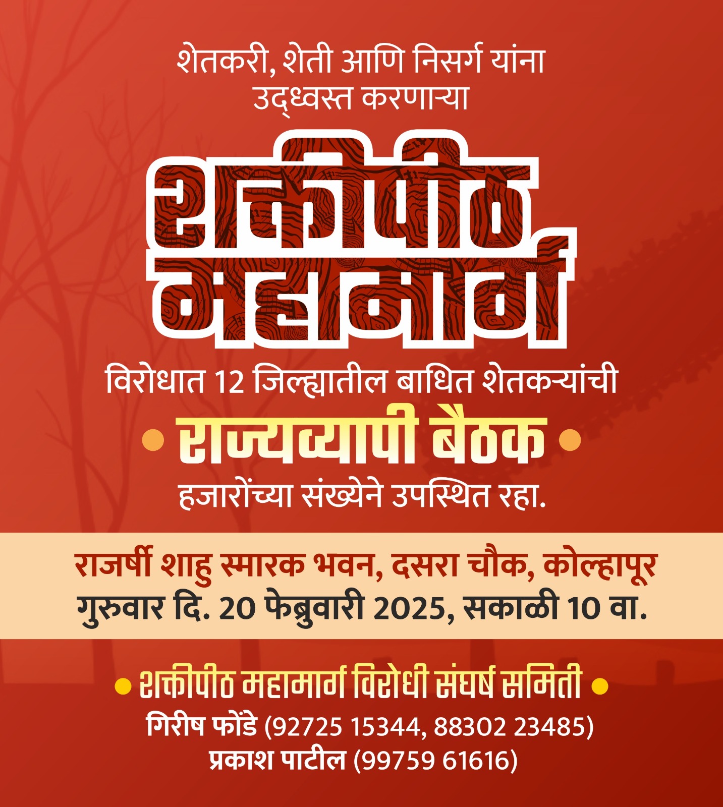 शक्तीपीठ महामार्गावरून संघर्ष तीव्र – बाधित शेतकऱ्यांची 20 फेब्रुवारीला राज्यव्यापी बैठक