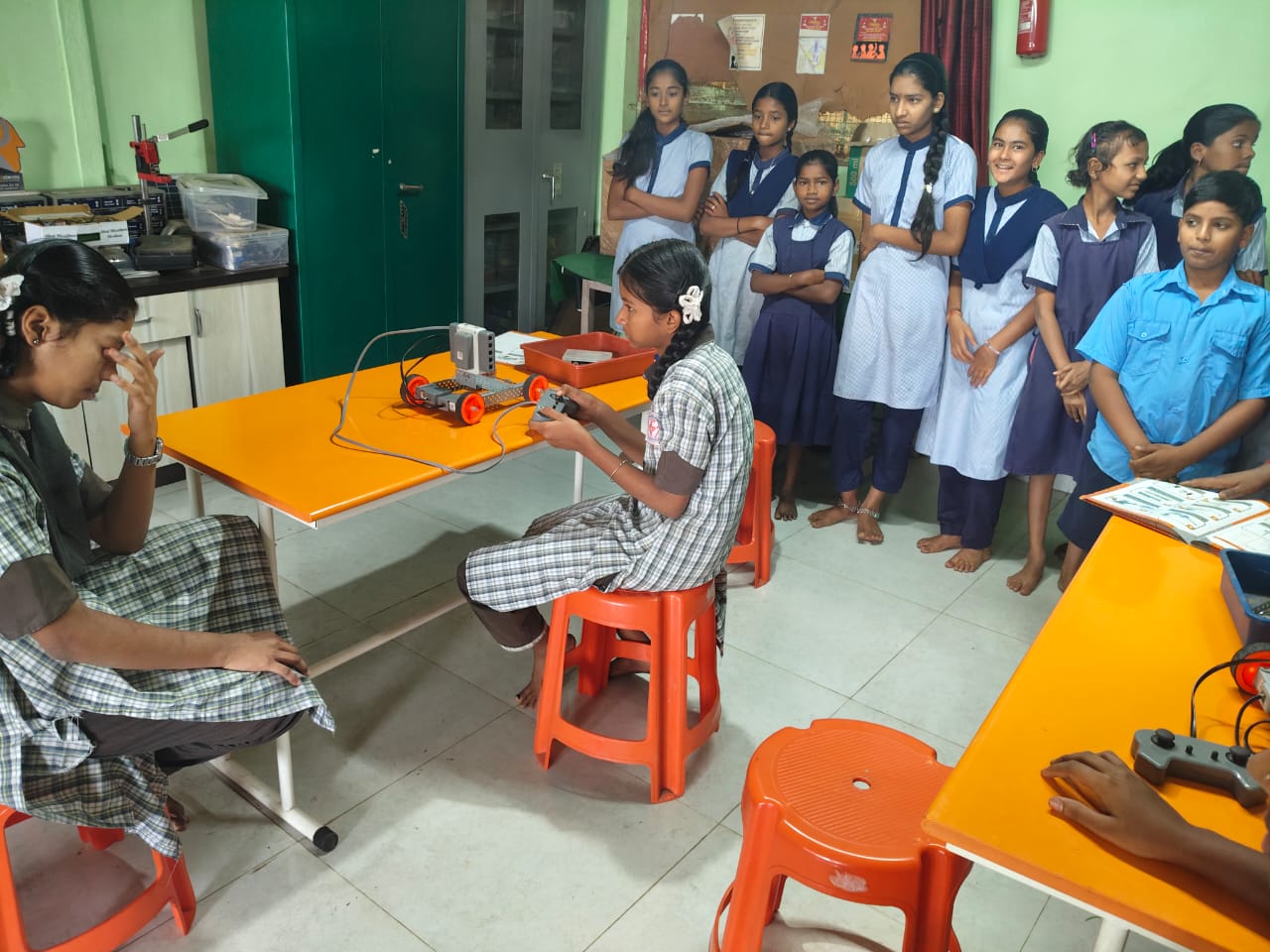 विद्यार्थ्यांना अटल टिंकरिंग लॅबमध्ये रोबो तयार करण्याचे प्रशिक्षण विज्ञान शिक्षक सतीश नंदनवार आणि हायस्कूलच्या तंत्रज्ञान प्रशिक्षित विद्यार्थ्यांनी दिले. प्रयोगशाळा, सुसज्ज ग्रंथालय, कलादालन पाहून विद्यार्थी भारावून गेले. मुख्याध्यापक संजय सौंदलगे यांनी या उपक्रमामुळे वैज्ञानिक दृष्टिकोन आणि तंत्रज्ञान कौशल्ये विकसित होतील असे मत व्यक्त केले.
