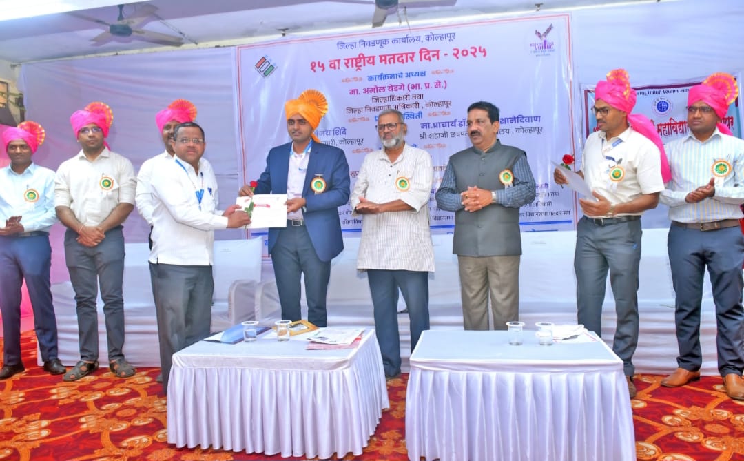 सातवे, ता. पन्हाळा – मतदार यादी शुद्धीकरणाबाबत उत्कृष्ट कार्य केल्याबद्दल सातवे येथील पर्यवेक्षक उत्तम विष्णू जाधव यांना जिल्हाधिकारी अमोल येडगे यांच्या हस्ते प्रमाणपत्र देऊन गौरविण्यात आले.