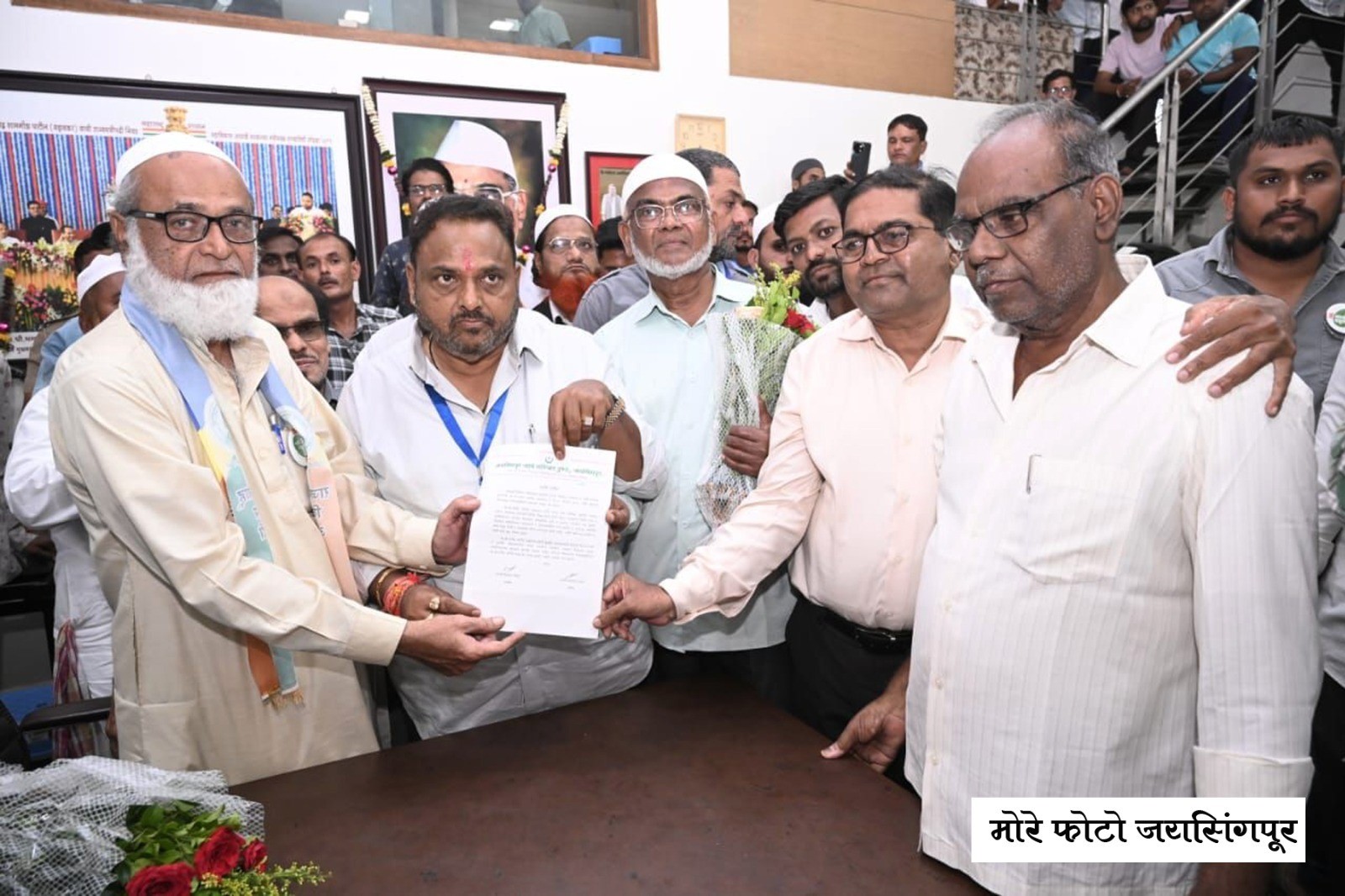 जयसिंगपूर :शिरोळ तालुक्यातील जामे मस्जिद ट्रस्ट, मदिना हिदायत ट्रस्ट, अल्फताह सुन्नत जमात ट्रस्ट, चांदतारा कमिटी जयसिंगपूर यांच्यासह शिरोळ तालुक्यातील अनेक मुस्लिम समाज बांधवांच्या ट्रस्टने तसेच पदाधिकाऱ्यांनी राजर्षी शाहू विकास आघाडीचे उमेदवार डॉ. राजेंद्र पाटील यड्रावकर यांना पाठिंबा देऊन त्यांच्या विजयाचा निर्धार केला. समाजाच्या सर्वांगीण विकासासाठी झटणाऱ्या आमदार यड्रावकर यांना पुन्हा विधानसभेत पाठवण्यासाठी सर्व ताकदीनिशी काम करणार असल्याची ग्वाही समाजाच्या पदाधिकाऱ्यांनी यावेळी दिली. यावेळी प्रमुख पदाधिकाऱ्यांनी आपल्या पाठिंब्याचे पत्र आमदार राजेंद्र पाटील यड्रावकर यांना दिले.