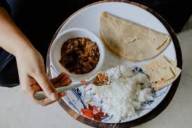 २ फुलके + भाजी + थोडा भात + डाळ + ताक |