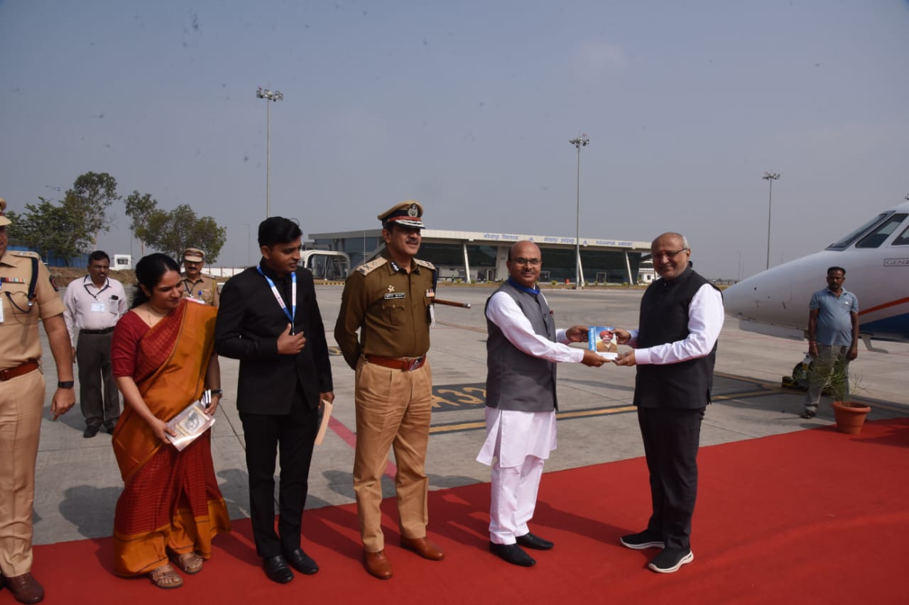 राज्यपाल सी.पी. राधाकृष्णन यांचे कोल्हापूर विमानतळावर स्वागत