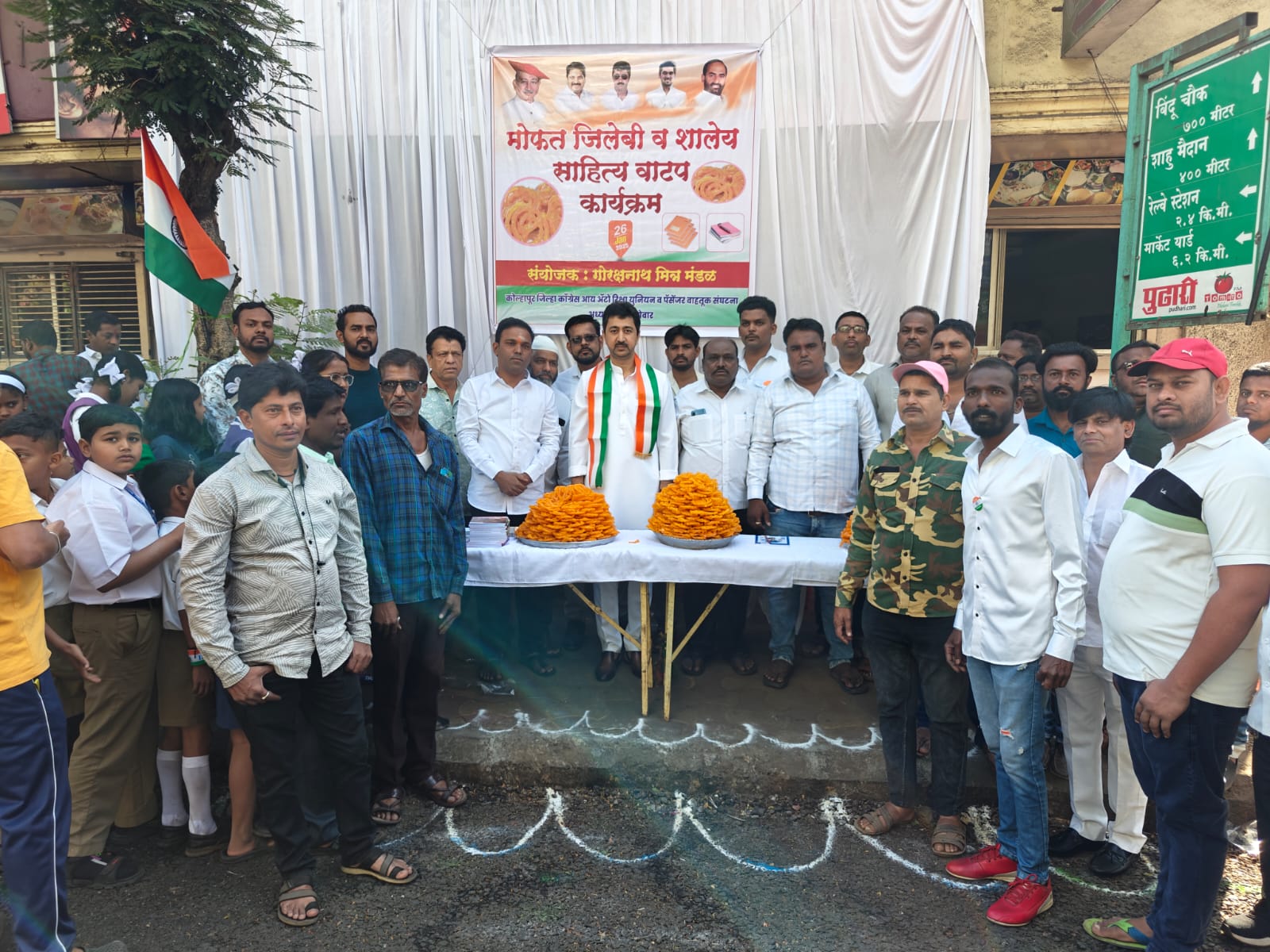 26 जानेवारी निमित्त मोफत जिलेबी व शालेय साहित्य वाटपाचा स्तुत्य उपक्रम